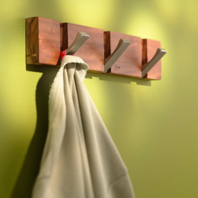 Raft palltoje pa vida Mottez – 4 grepa – Druri gome dhe çelik inox Ky raft për veshjen e derës