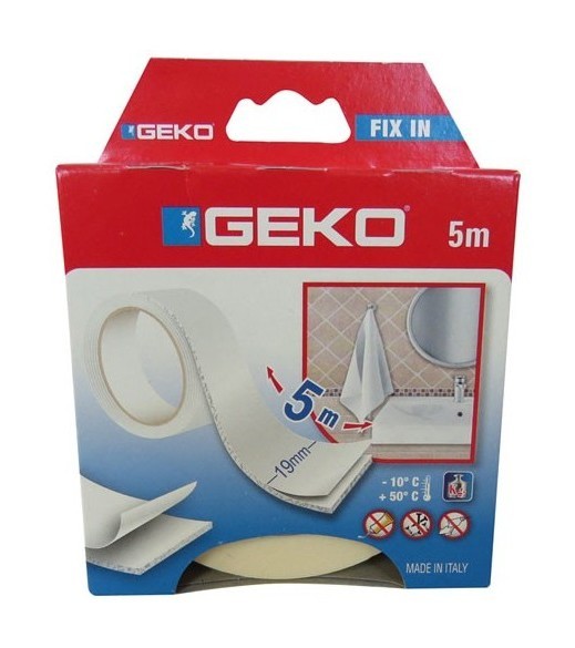 Shiriti shkumë i dyanshëm i GEKO – 19 mm x 5 m – i bardhë është i përshtatshëm për përdorim