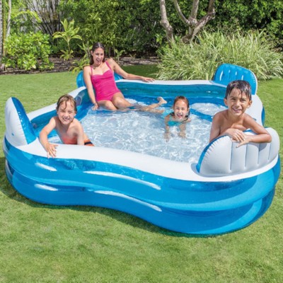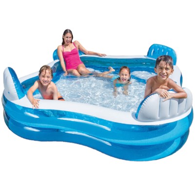Bëj bujë këtë verë duke luajtur në Intex Swim Center™, Pishinë sallë pritjeje familjare! Forma unike lejon hapësirën maksimale të lojës dhe muret anësore të gjera japin rehati dhe stabilitet shtesë. Katër sediljet e integruara me mbështetëse janë perfekte për t’u çlodhur dhe për t’u çlodhur në rehati. Janë dhënë dy mbajtëse për pije për të mbajtur pijet tuaja freskuese ndërsa jeni duke pushuar. Karakteristikat: Madhësia e fryrë: 229 x 229 x 66cm Kapaciteti i ujit (80%): 990 litra Mosha: 3+ Specifikimet: Përmasat: H:45.7 x P:39.2 x D:13.2 cm Ngjyra: Blu Materiali: Pvc Numri i modelit: 56475NP.
